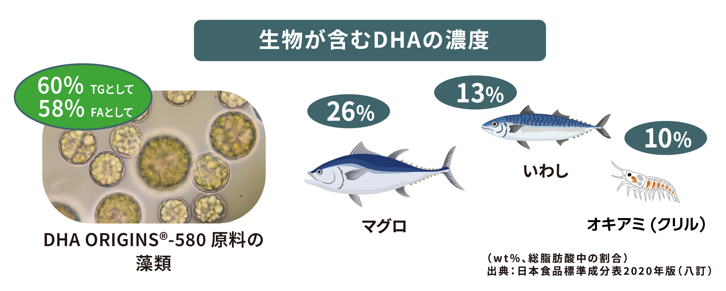 ”DHA ORIGINSは天然由来で世界最高レベルのDHAを含みます。